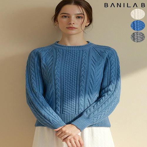 [바닐라비]여성 꽈배기 세미크롭 니트