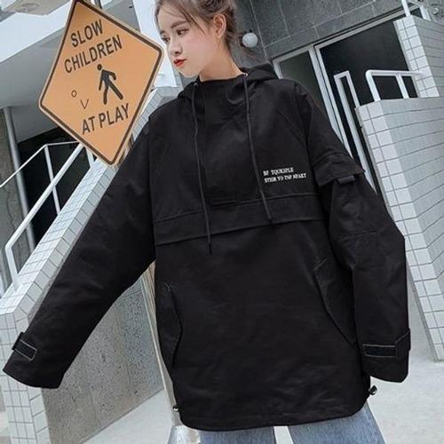 [다잇템][다잇템] 여성 박시핏 폴라넥 후디 캐쥬얼 탈부착 바람막이_23626128_588872
