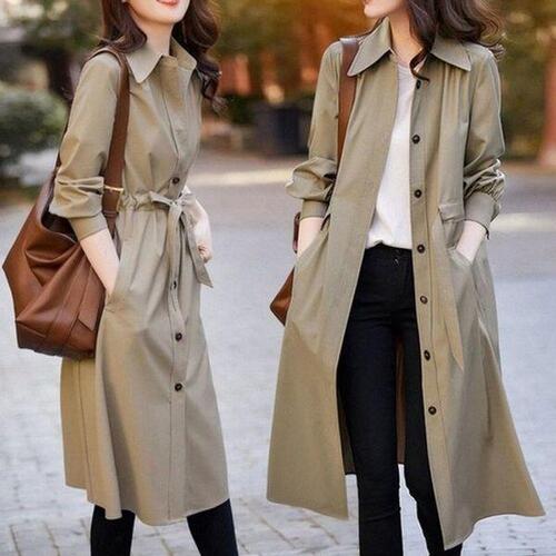 [끌레아]여성 롱코트 봄 가을 간절기 베이지 트렌치코트 바바리코트 루즈핏 롱셔츠 롱원피스 아우터 자켓