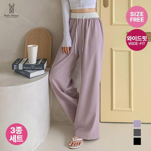 3종세트 벨라도나 여성 가을 바스락 와이드 밴딩팬츠 트레이닝 편한바지 BLN25_P221s3