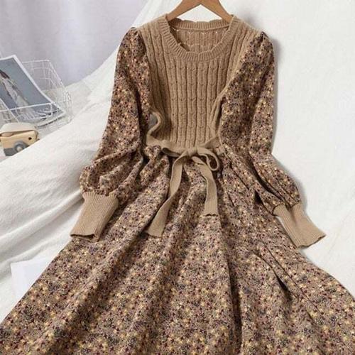 [셀럽하우스]은창)바스트 JGUC1173 니트 윈터 안개 스트링 따뜻 플라워 롱
