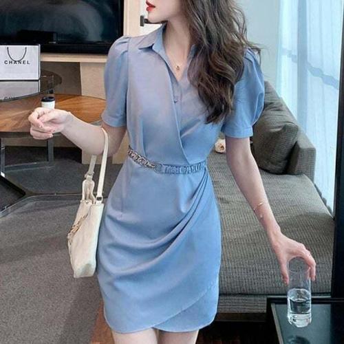 [셀럽하우스]정장룩 QVCC2283 디자인 바스트 원피스 랩스타일 슬림 카라 슬