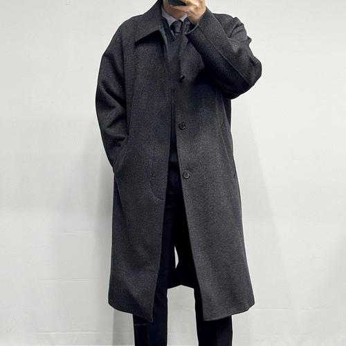 바쏘옴므 남성 렉스톤 캐시미어 롱 세미 오버핏 이중직 코트 캐주얼 정장 트렌치 아우터