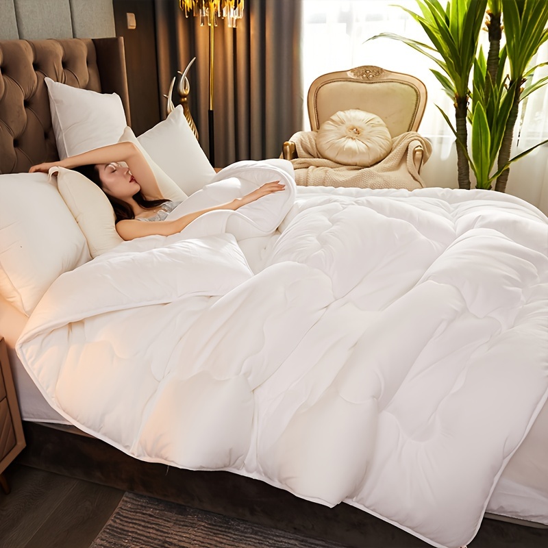 TEMU 울트라-소프트 통기성 따뜻한 이불 - 폴리에스터, 추운 날씨용 사계절 코지 침구, 클래식 순백색 초대형 퀼트 디자인, 세탁기 사용 가능