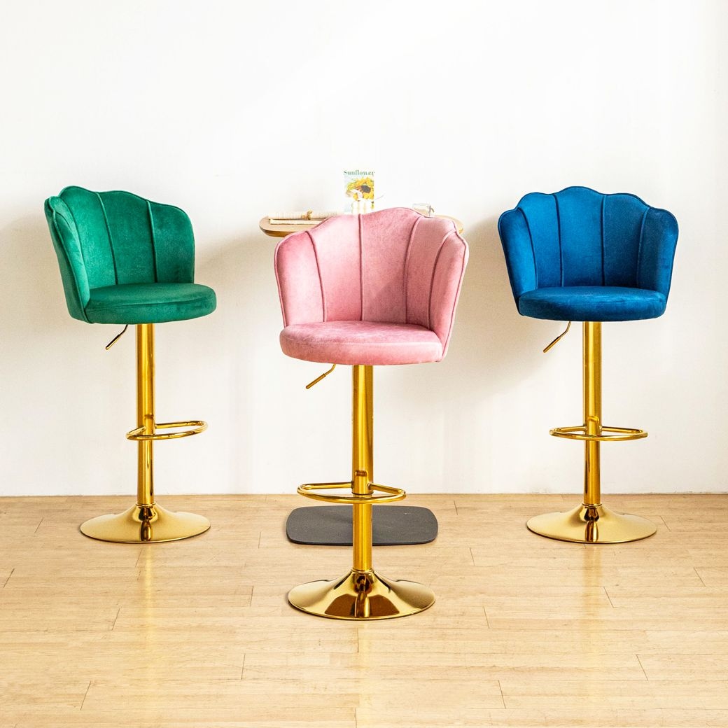 릴리 바체어 벨벳 아일랜드 식탁의자 높이조절 홈바 조개 골드 바텐 의자 3colors