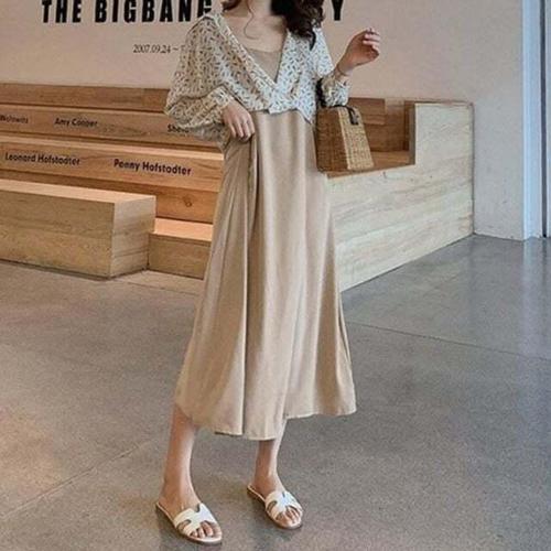[셀럽하우스]밑단 EPYK3642 포인트 롱 원피스 슬림핏 여름 바캉스룩