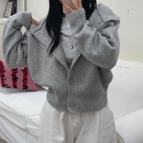 [옷자락]여성용 데일리 박스핏 울 가디건 단추 브이넥
