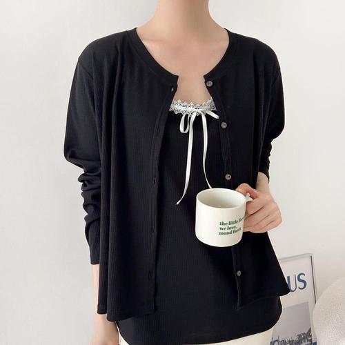 [다잇템]여자 카디건 박스 리본나시 라운드 레이스 세트