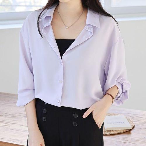 [다잇템]여자 버튼 블라우스 박스 엷은 무지 셔츠