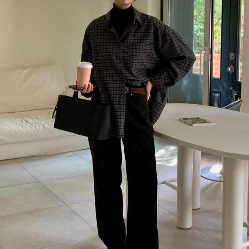 [옷자락] 여성 캐주얼 코튼100 박스핏 배색체크 남방