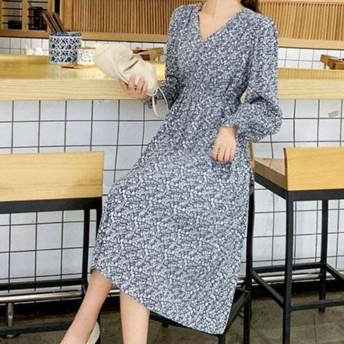 [셀럽하우스]롱원피스 SVNP3058 DJJ0080 잔꽃무늬 원피스 셔링 박스원피스