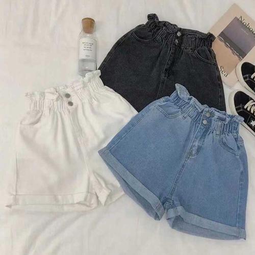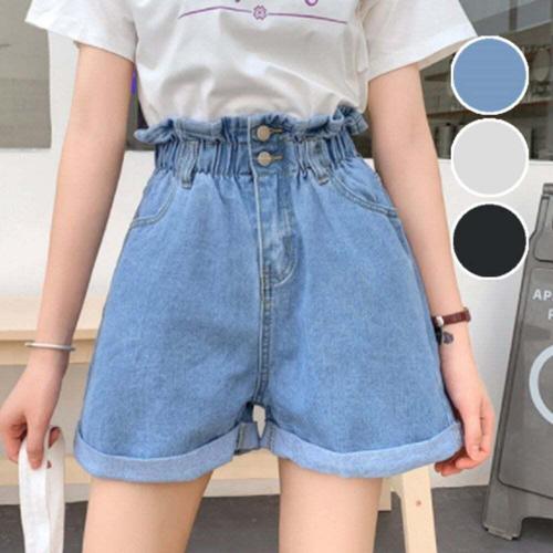 [셀럽하우스]A라인 NANK2144 스타일 하이웨이스트 여성 허리밴딩 데님반바지