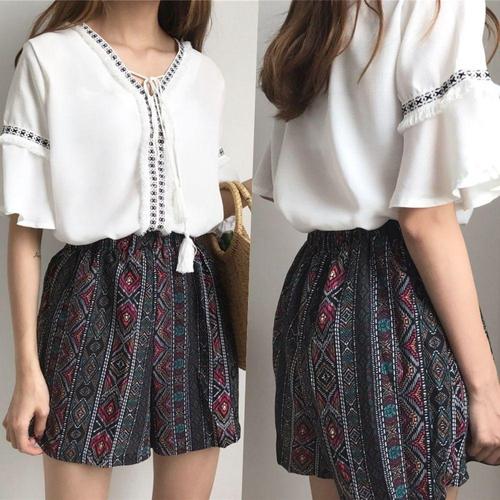 [셀럽하우스]에스닉 IENG5262 바캉스 반바지 투피스 세트