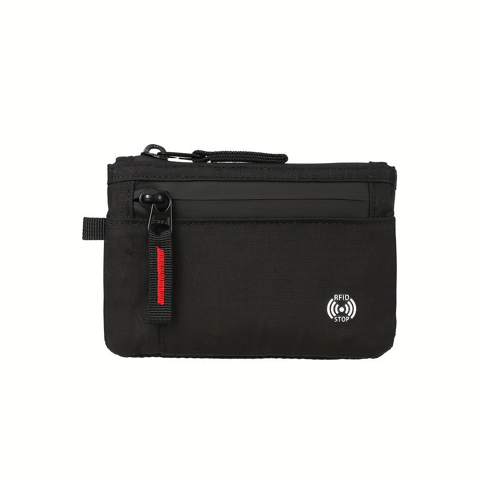 TEMU 남성용 RFID 차단 미니 여행 지갑 - 슬림 비즈니스 디자인, 안전한 지퍼 잠금장치 및 손목 스트랩 포함, ID, 신용카드, 현금을 위한 컴팩트 블랙 정리함, 디자인, 고품질 지퍼