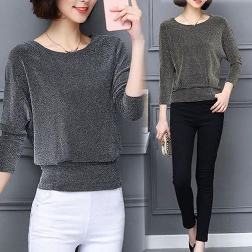 여성용 가을 겨울 빅사이즈 라운드넥 스팽글 티 기모 긴팔 티셔츠