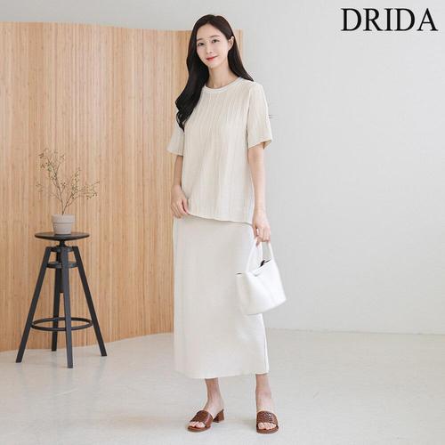 [드리다]여성 여름 반팔 니트 H라인 롱 스커트 상하 셋업 세트 미시 하객 모임 오피스룩 등원