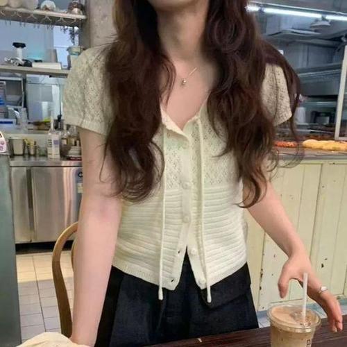 [셀러허브_여성트랜드패션]ONM 여름 캐주얼 반팔 숄 러블리 니트 세트