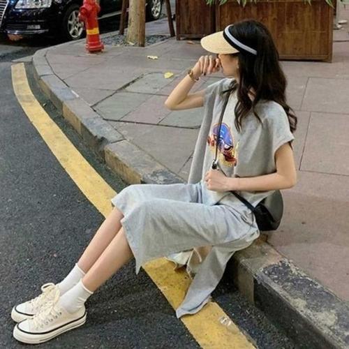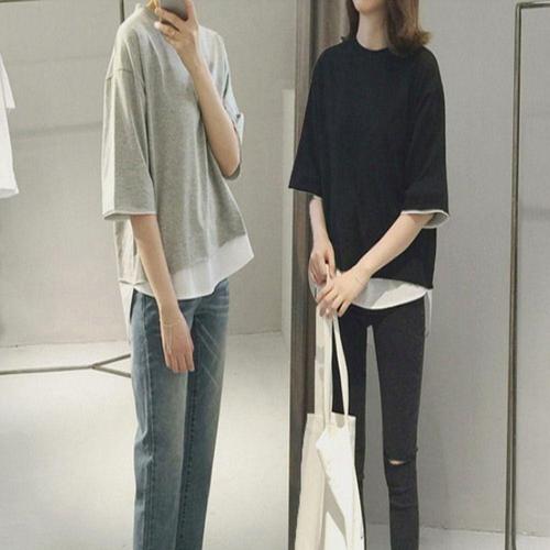 루즈핏 롱 반팔 무지 스타일 여자 티셔츠 레이어드 WFLQ8AG