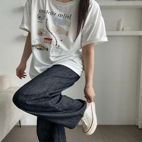 [엄지척]빈티지 프린팅 롱 반팔 오버핏 캐주얼 티셔츠_19628528_667501
