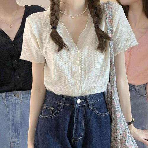 여름 반팔 블라우스 여성 브라우스 여자 브이넥 여름 WFL1HWC