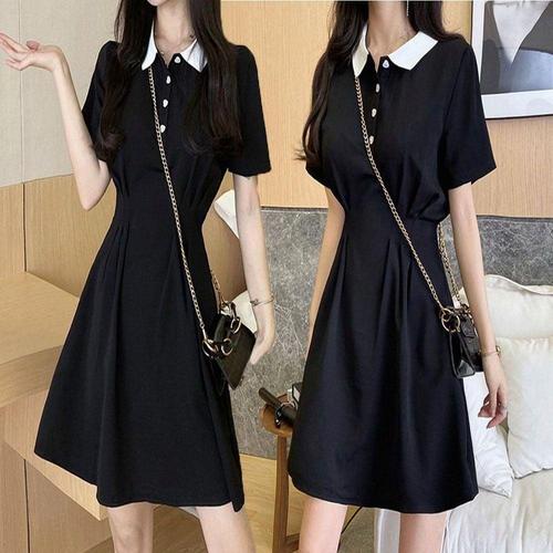 여자 배색 왕카라 원피스 러블리 반팔 블랙 하객룩