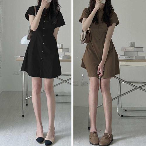 네모엔룩 여성용 피케카라반소매 여름 코튼소재 셔츠카라넥 반오픈 데일리 반소매 미니 원피스 NL