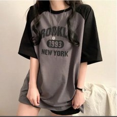 나인테일 여름 여성 캐주얼 브룩클린 나그랑 배색 박시한 오버핏 라운드넥 반팔티 4컬러