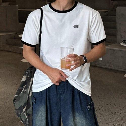 [피팅남]남자 모랄 세미머슬핏 20수면 와펜 링거 반팔티
