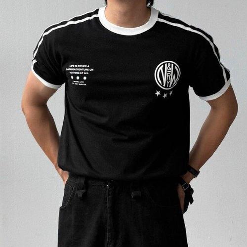 [피팅남]남자 월리 20수 면 테이핑 크롭 레터링 링거 반팔티