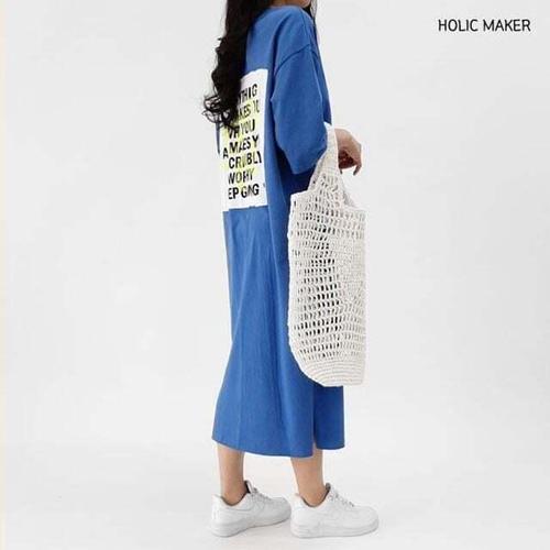 [셀럽하우스]원피스 IMBW7123 베이직 롱 블루 여름 반팔 오버 루즈