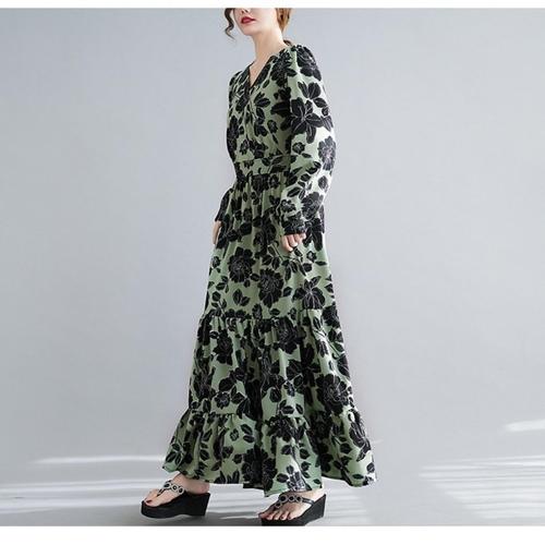 [셀럽하우스]F7940 HAOC5977 2프린팅 우아 맥시 롱 원피스 패턴 롱 반팔 원