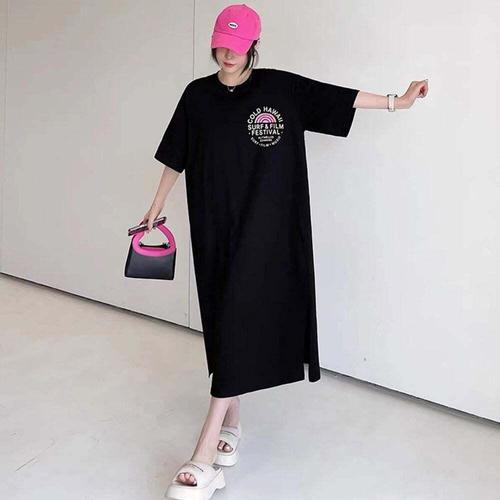 [셀럽하우스]레터링 DYJZ0935 인기 여성 반팔 트임 감성 롱원피스 1P 나들이