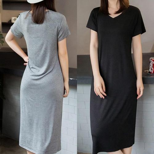 [셀럽하우스]베이직 SDBZ8426 디자인 홈라운드 반팔 롱 원피스 LKO520 브이