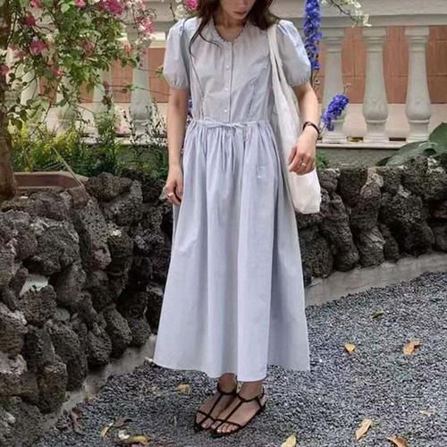 [셀럽하우스]반팔 SWNL7666 베이직 하레나 A라인 롱 올데이 원피스 여름 면