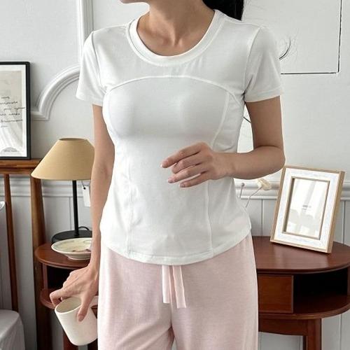 요가복 반팔 여성 스판 무지 기본티 어깨펀칭 (WFKAZ8Q)