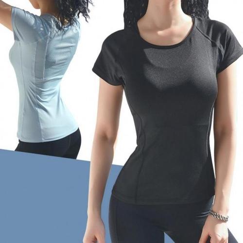 부드러운 반팔 여성요가복 여성 M 운동복-블랙 (3ZAoL)