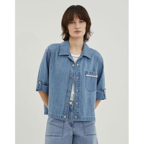 여성 여름 세미 크롭 반팔 청자켓 남방 데님 셔츠 nKe6+4XUB