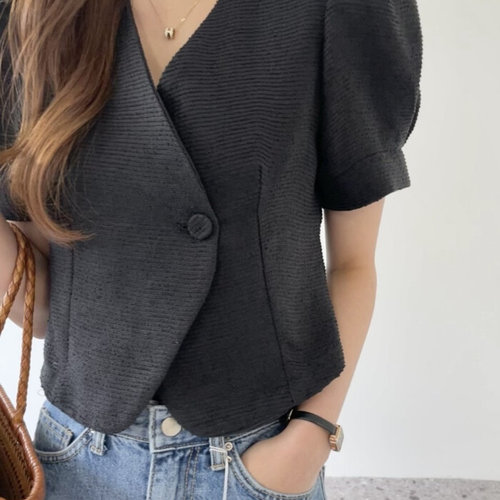 클루이가넷 / 원버튼 여름 트위드자켓 어깨퍼프 크롭 여성 반팔 숏자켓