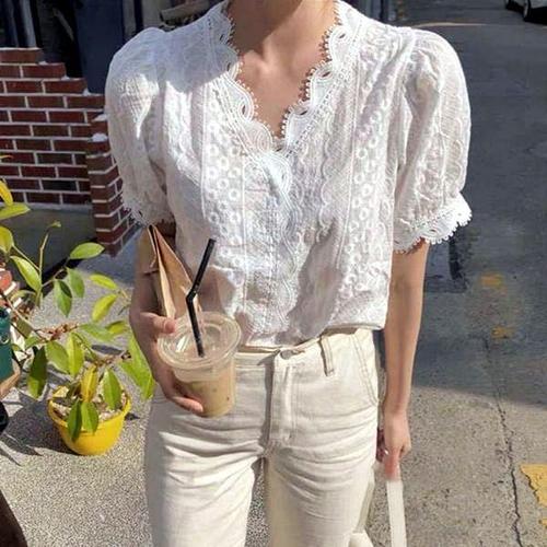 [브리치] 나바바 / NB2231 러블리 레이스 자수 퍼프 반팔 블라우스