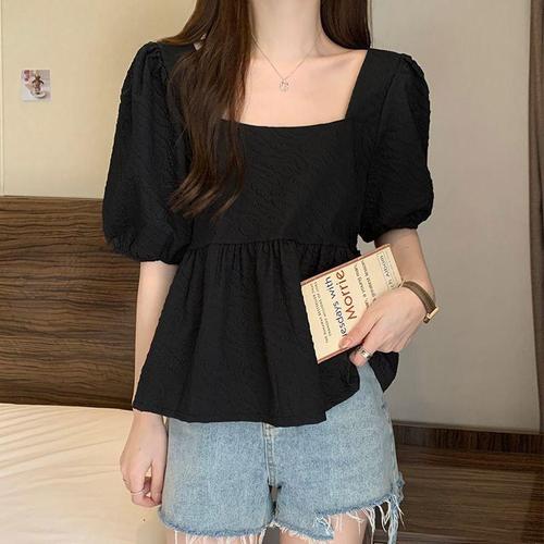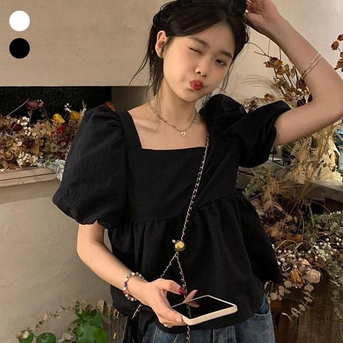 [셀러허브_여성트랜드패션]여자 퍼프 시원한 블라우스 소매 반팔 여름 스퀘어넥