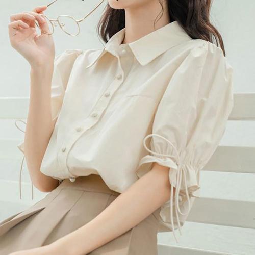 레티고 데일리 버튼 퍼프소매 반팔 셔츠 블라우스