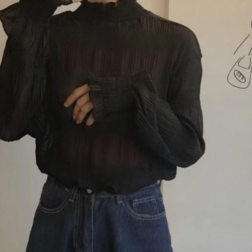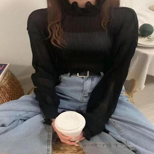 [페이릿] 퓨드 반폴라 프릴 시스루 블라우스