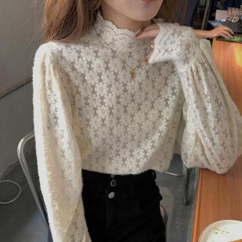 [라일리여성의류] Rly 레이스 블라우스 여자 시스루 이너 반폴라 플라워