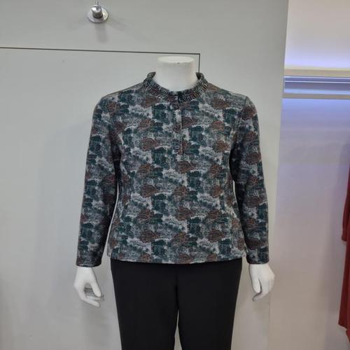 [벨리시앙]반하이넥 기하학패턴 져지 블라우스 SZBL3331