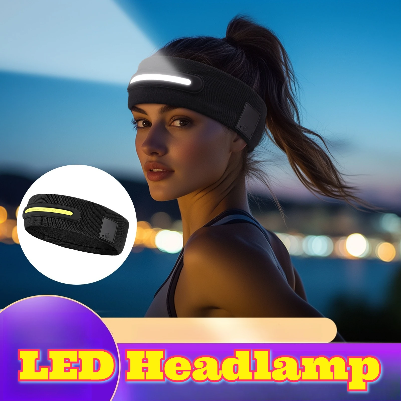야외 야간 달리기 낚시 조명 LED 라이트 헤드밴드 머리에 착용하는 발광 땀 흡수 스포츠 헤드스카프 탄력 니트