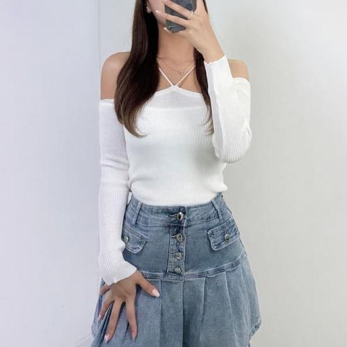 [오너클랜]인기상품 발레코어 무드 오프숄더 긴팔 골지 니트 [WD8B120_250917]