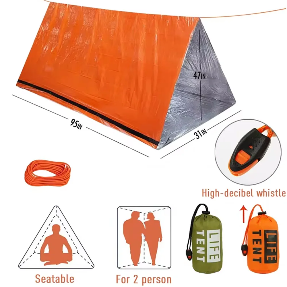비상 텐트, 캠핑 및 야외 활동을 위한 방수 2인용 비상 튜브 텐트