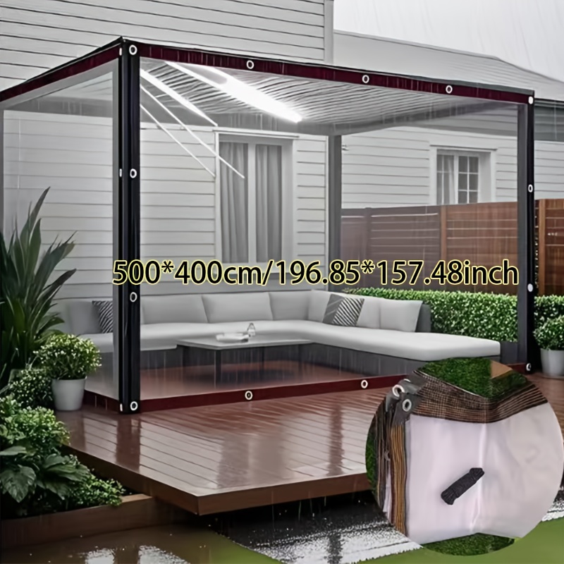 TEMU 두꺼운 투명 방수 천, 신축성 있는 정원용 비방지 폴리에틸렌 천, 바람과 눈에 강한 발코니 및 야외 캠핑 쉼터용 다목적 차광천