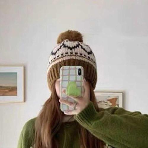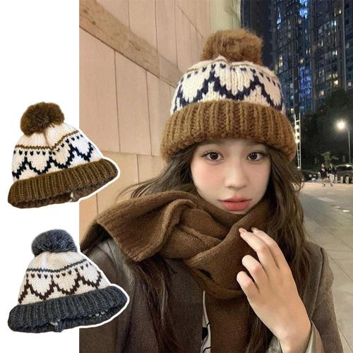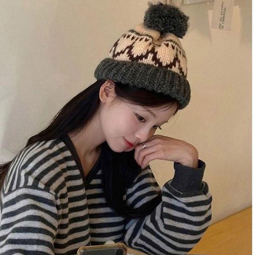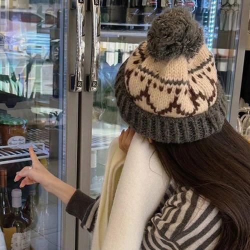 빈티지 겨울모자 털모자 캐주얼무늬 배색 방울비니 WFFQ6AI