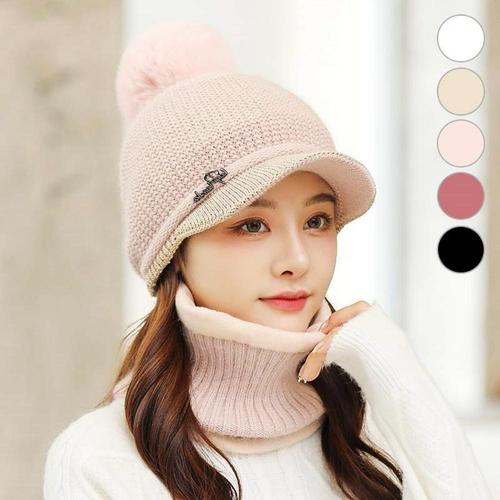 여성 5컬러 겨울 방한 왕방울 니트캡비니 넥워머 세트 WFFLQFD